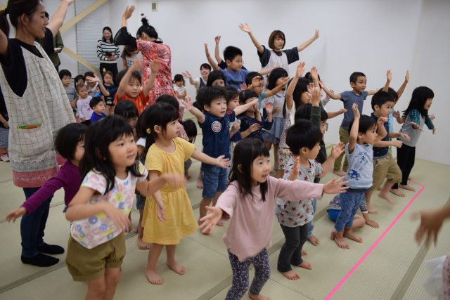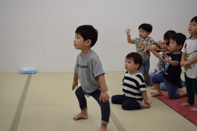 気が付けばとても楽しそうに参加していました。子ども達の目を丸くしながら演劇を見る表情や一緒に劇や手遊び