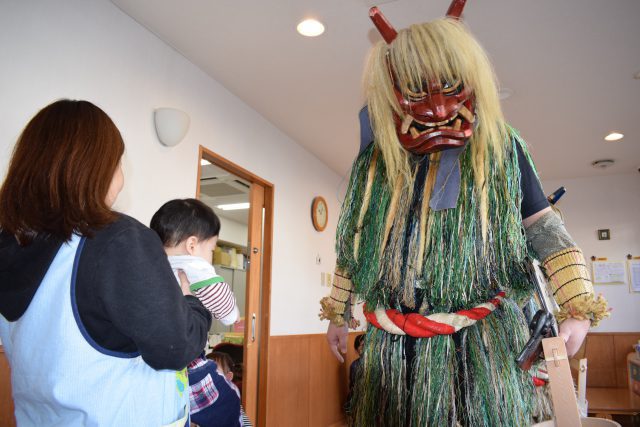 急に現れたなまはげに子ども達は驚き、泣いてしまっていました。