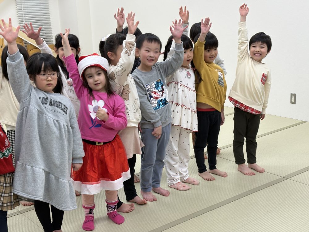 未満児たちは、合同でクリスマス会を行い、雰囲気を楽しみました。サンタクロースの登場に驚いて泣いてしまう子ども達もいました。
